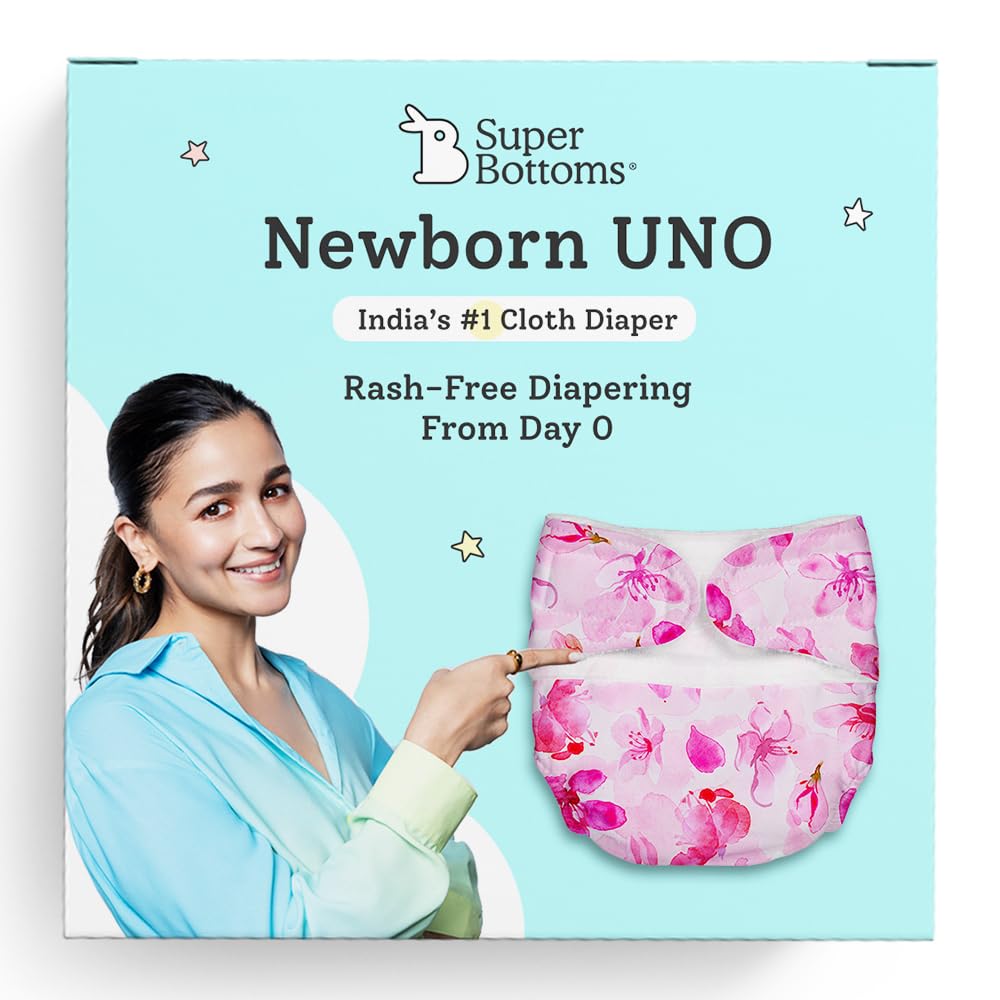 superbottoms Newborn Uno Cloth Diaper-Reusable & Washable Cloth Diaper For Newborn Babies From 0-3 Months (0-7 Kg),Softest & Safest Newborn Baby Cloth Diapers With Dry Feel Magic Pad (Cherry Blossom)