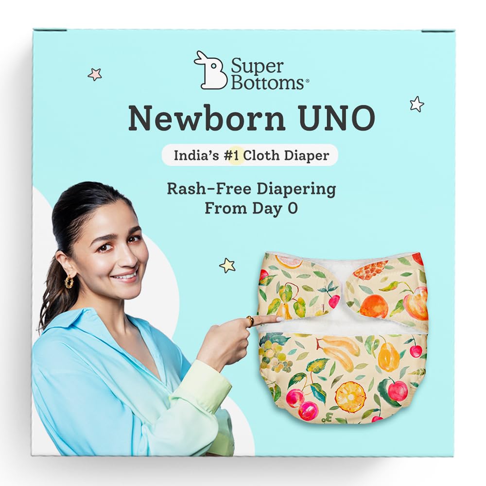 superbottoms Newborn Uno Cloth Diaper - Reusable & Washable Cloth Diaper For Newborn Babies From 0-3 Months (0-7 Kg)|Softest & Safest Newborn Baby Cloth Diapers With Dry Feel Magic Pad (Fruit Burst)