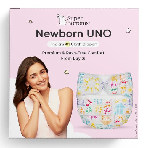 SuperBottoms Newborn UNO: Premium & Rash-Free Comfort From Day 0!Perfect for newborns weighing 2.57 kg (0 to 3 months).Introducing the SuperBottoms Newborn UNO a reusable and washable cloth diaper designed for your newborns comfort.This diaper is made from all-natural materials and contains no harmful chemicals making it the gentlest choice for your babys delicate skin. It gives you the convenience of a disposable diaper while keeping the benefits of cloth perfect for busy parents!The Newborn UNO has a soft waterproof outer layer made from velvety soft fabric and comes with a Dry Feel Magic Pad. Made from GOTS Certified 100% Organic Cotton it can absorb 4-5 pees keeping your newborn dry and comfy. Plus the Velcro closure makes it easy to put on and adjust!The special SuperDryFeel layer on top keeps your babys bum nice and dry even after they pee on it. Its designed for newborns up to 3 months old fitting babies weighing between 2.5 kg and 7 kg.Certified by CPSIA and OEKO-TEX the diaper is gentle on your babys sensitive skin.Loved by over 20 Lakh+ parents and recommended by paediatricians SuperBottoms is committed to giving your baby the best care without compromise.Note: Give them a wash before using for the best results!The Dry Feel Magic Pad may come with either a blue or white SuperDryFeel layer depending on whats in stock. But dont worryits performance will be just as great keeping your baby dry and comfy!
