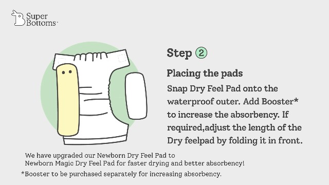 SuperBottoms Newborn UNO: Premium & Rash-Free Comfort From Day 0!Perfect for newborns weighing 2.57 kg (0 to 3 months).Introducing the SuperBottoms Newborn UNO a reusable and washable cloth diaper designed for your newborns comfort.This diaper is made from all-natural materials and contains no harmful chemicals making it the gentlest choice for your babys delicate skin. It gives you the convenience of a disposable diaper while keeping the benefits of cloth perfect for busy parents!The Newborn UNO has a soft waterproof outer layer made from velvety soft fabric and comes with a Dry Feel Magic Pad. Made from GOTS Certified 100% Organic Cotton it can absorb 4-5 pees keeping your newborn dry and comfy. Plus the Velcro closure makes it easy to put on and adjust!The special SuperDryFeel layer on top keeps your babys bum nice and dry even after they pee on it. Its designed for newborns up to 3 months old fitting babies weighing between 2.5 kg and 7 kg.Certified by CPSIA and OEKO-TEX the diaper is gentle on your babys sensitive skin.Loved by over 20 Lakh+ parents and recommended by paediatricians SuperBottoms is committed to giving your baby the best care without compromise.Note: Give them a wash before using for the best results!The Dry Feel Magic Pad may come with either a blue or white SuperDryFeel layer depending on whats in stock. But dont worryits performance will be just as great keeping your baby dry and comfy!