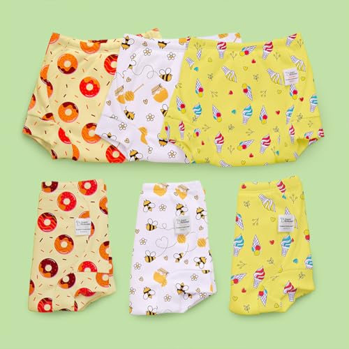 SuperBottoms Padded Underwear™ | For Potty Training & Mess-Free Diaper-Free time | Prevents Pee Puddles | 3 layers of Premium Cotton Padding (No sponge) | (Sweet Tooth, Size: 0, Pack of 6)