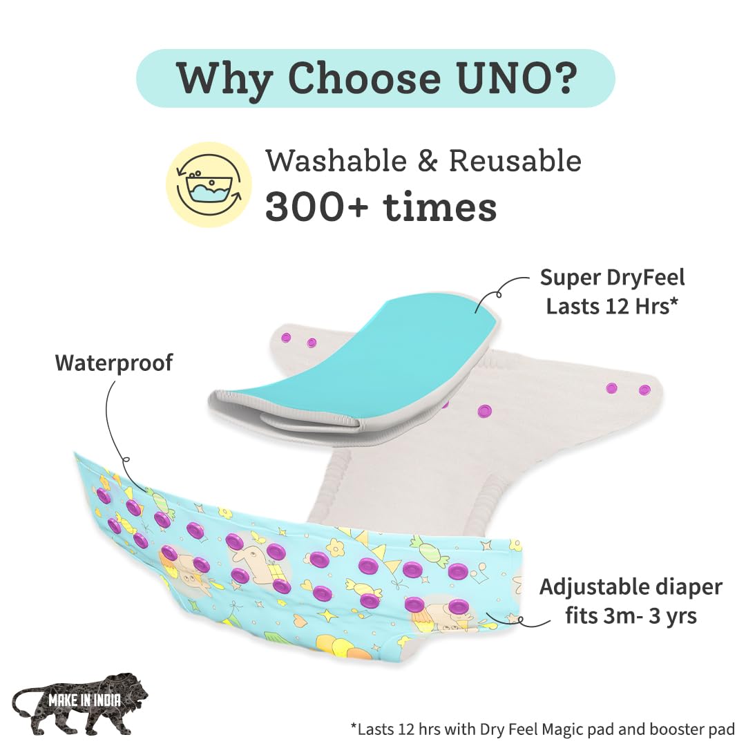 HomeBabyDiaperingCloth DiapersSuperBottoms Stash Builder Pack with 3 Freesize UNO- New version| Cloth diapers combo for babies from 3M to 3Y |With 3 Fleece liners, 2 Booster Pads & 1 Very Heavy Wetter Pad (hemp insert)
