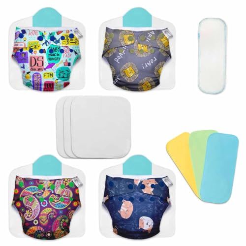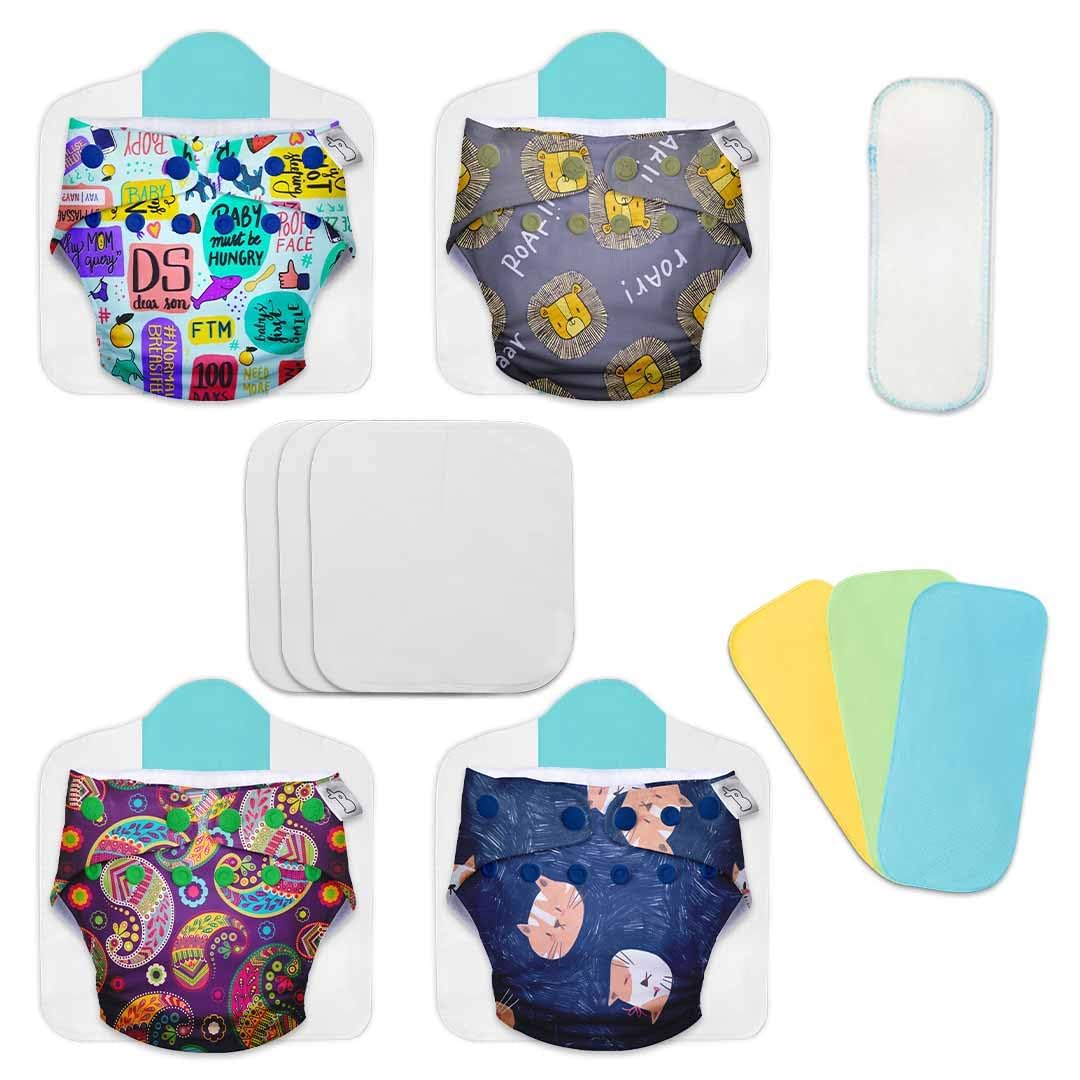 SuperBottoms Stash Builder Pack with 4 Freesize UNO- New version| Cloth diapers combo for babies from 3M to 3Y |Comes with 3 Fleece liners 3 Booster Pads & 1 Very Heavy Wetter Pad