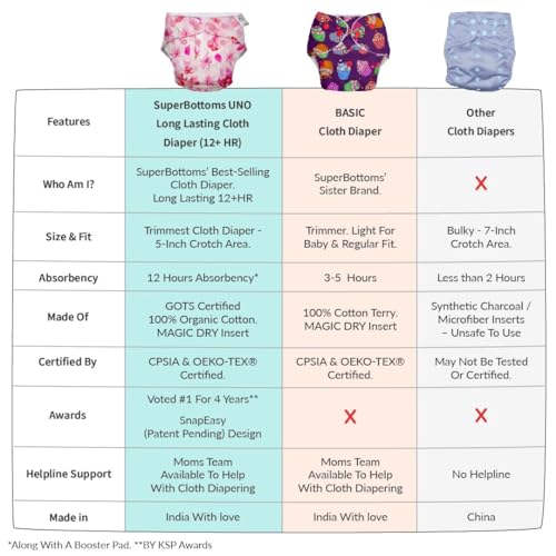 HomeBabyDiaperingCloth DiapersSuperBottoms Stash Builder Pack with 4 Freesize UNO- New version| Cloth diapers combo for babies from 3M to 3Y |Comes with 3 Fleece liners, 3 Booster Pads & 1 Very Heavy Wetter Pad