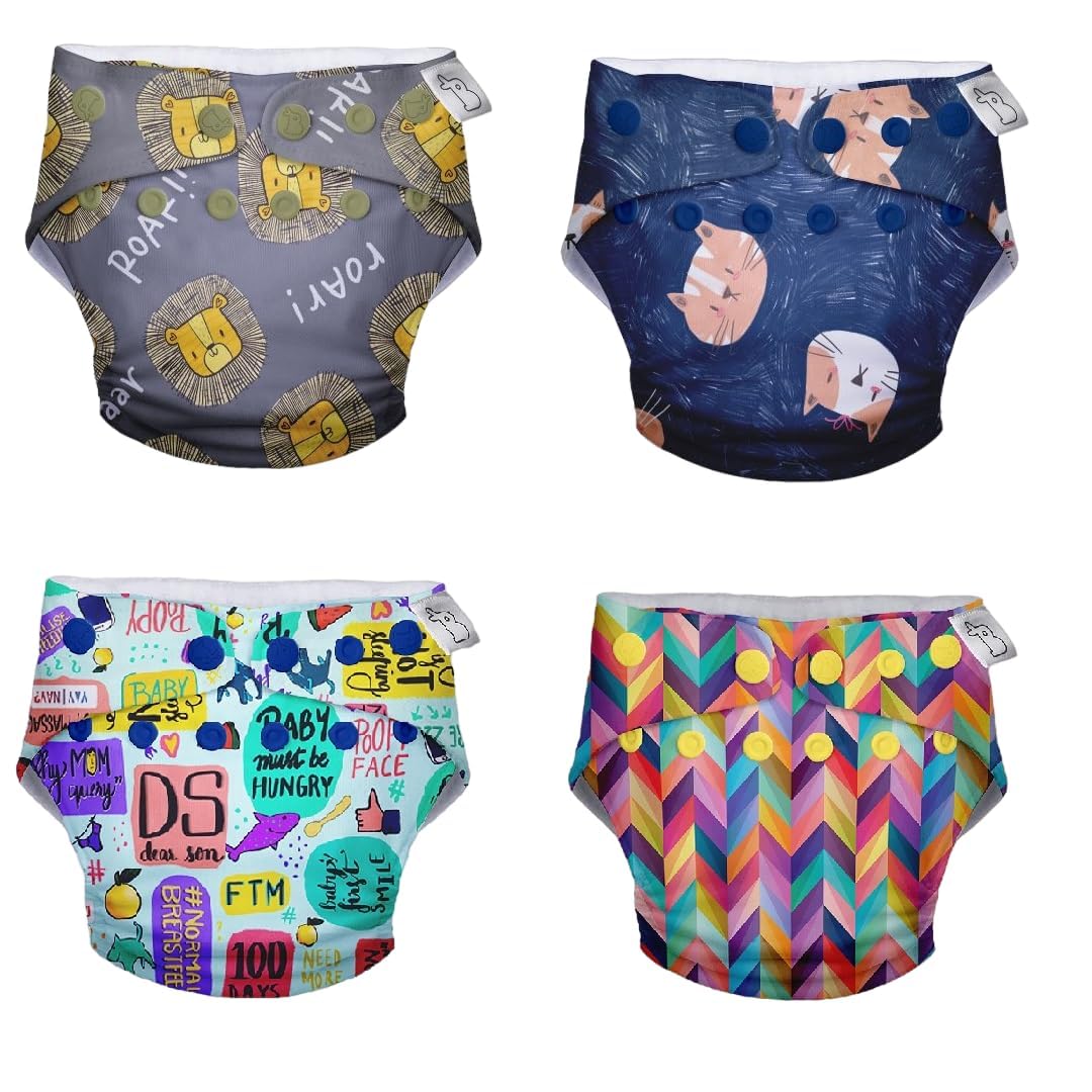 SuperBottoms Stash Builder Pack with 4 Freesize UNO- New version| Cloth diapers combo for babies from 3M to 3Y |Comes with 3 Fleece liners 3 Booster Pads & 1 Very Heavy Wetter Pad (hemp insert)