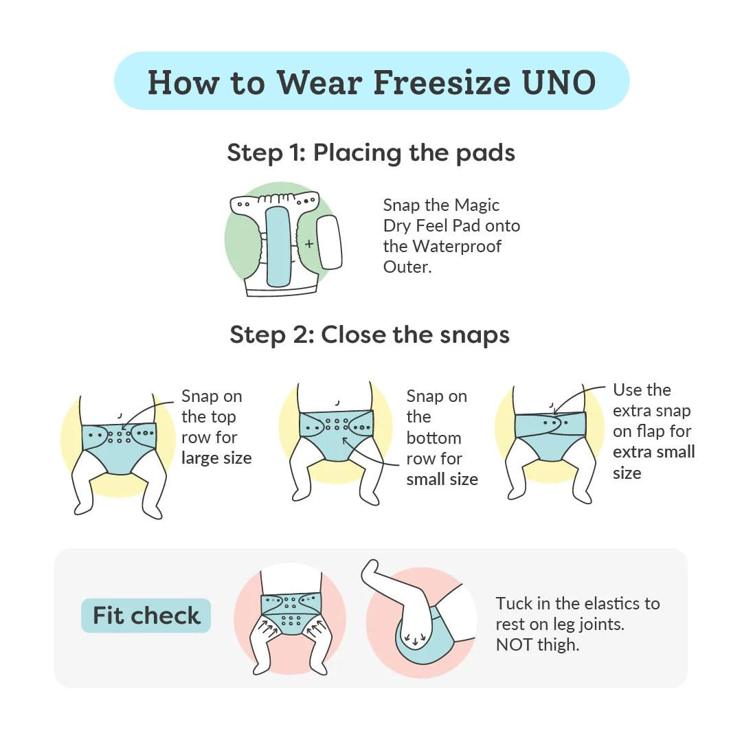 SKIN-FRIENDLY ECO-FRIENDLY & POCKET-FRIENDLY: SuperBottoms Newborn UNO Cloth Diaper is made from 100% Organic Cotton Pads (diaper inserts) with Super DryFeel Layer that keeps baby?s bums dry and helps in reducing rashes significantly. It is a washable and