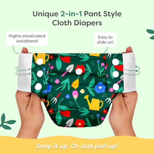SuperBottoms UNO Cloth Diaper Pants (9kg-17kg) | Pant Style Cotton Diaper Pants | Super Absorbent | Washable & Reusable 300+ times | Comes with a Dry Feel Magic Pad | CPSIA Certified | Muddy Meadows