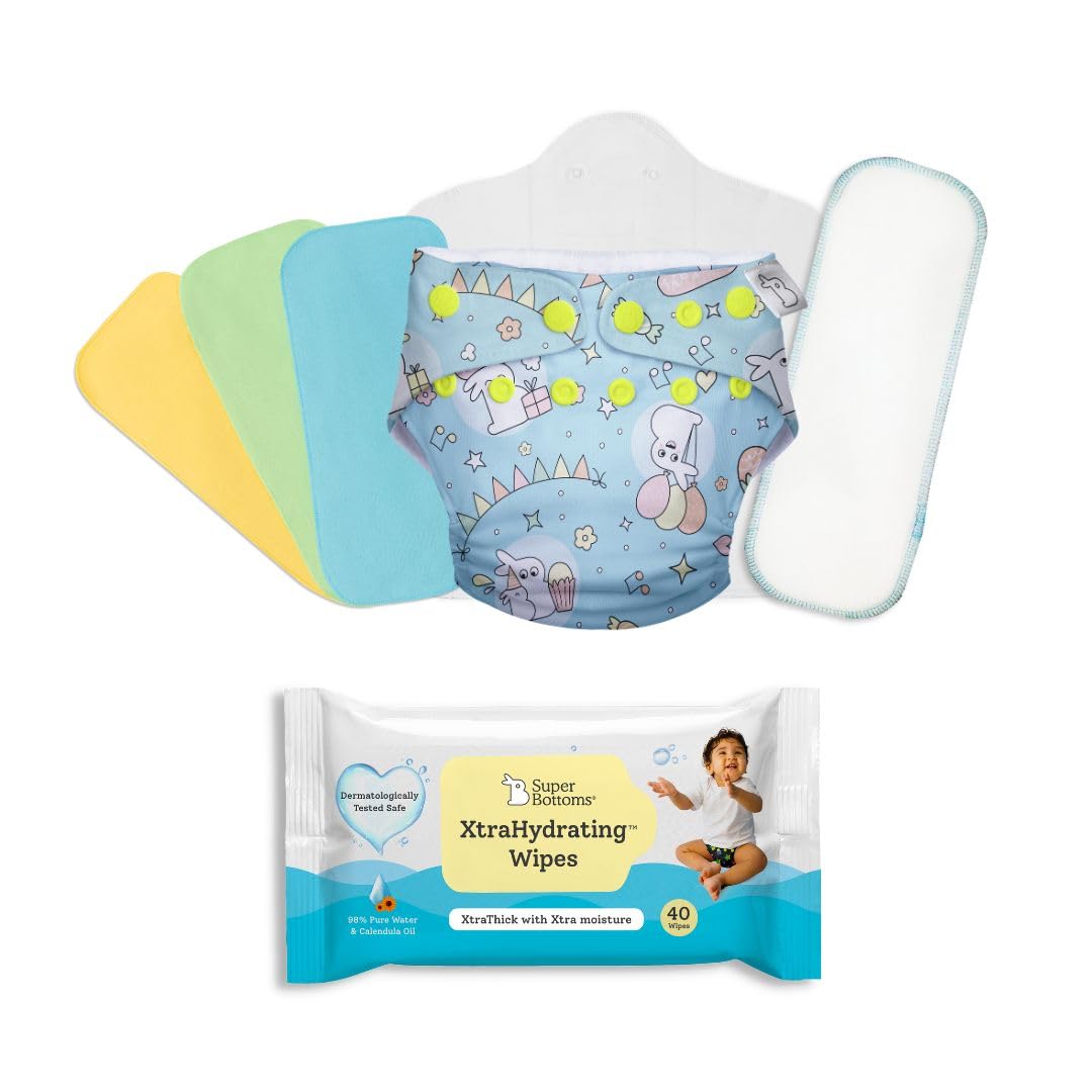 HomeBabyDiaperingCloth Diaperssuperbottoms UNO Cloth Diaper Trial Kit-Reusable&Washable Cloth Diapers For Babies 0 To 3 Years|Leakproof,All Night Cloth Diaper Freesize UNO All In One Diaper With Organic Cotton Inserts Pack Of 7