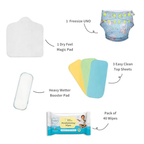 superbottoms UNO Cloth Diaper Trial Kit-Reusable&Washable Cloth Diapers For Babies 0 To 3 Years|LeakproofAll Night Cloth Diaper Freesize UNO All In One Diaper With Organic Cotton Inserts Pack Of 7