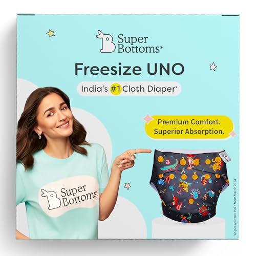 SuperBottoms UNO Freesize Cloth Diaper | Cloth diaper for babies 3M to 3Y | Comes with cloth diaper inserts | 1 Organic cotton Soaker + 1 Booster | Hungry Caterpillar