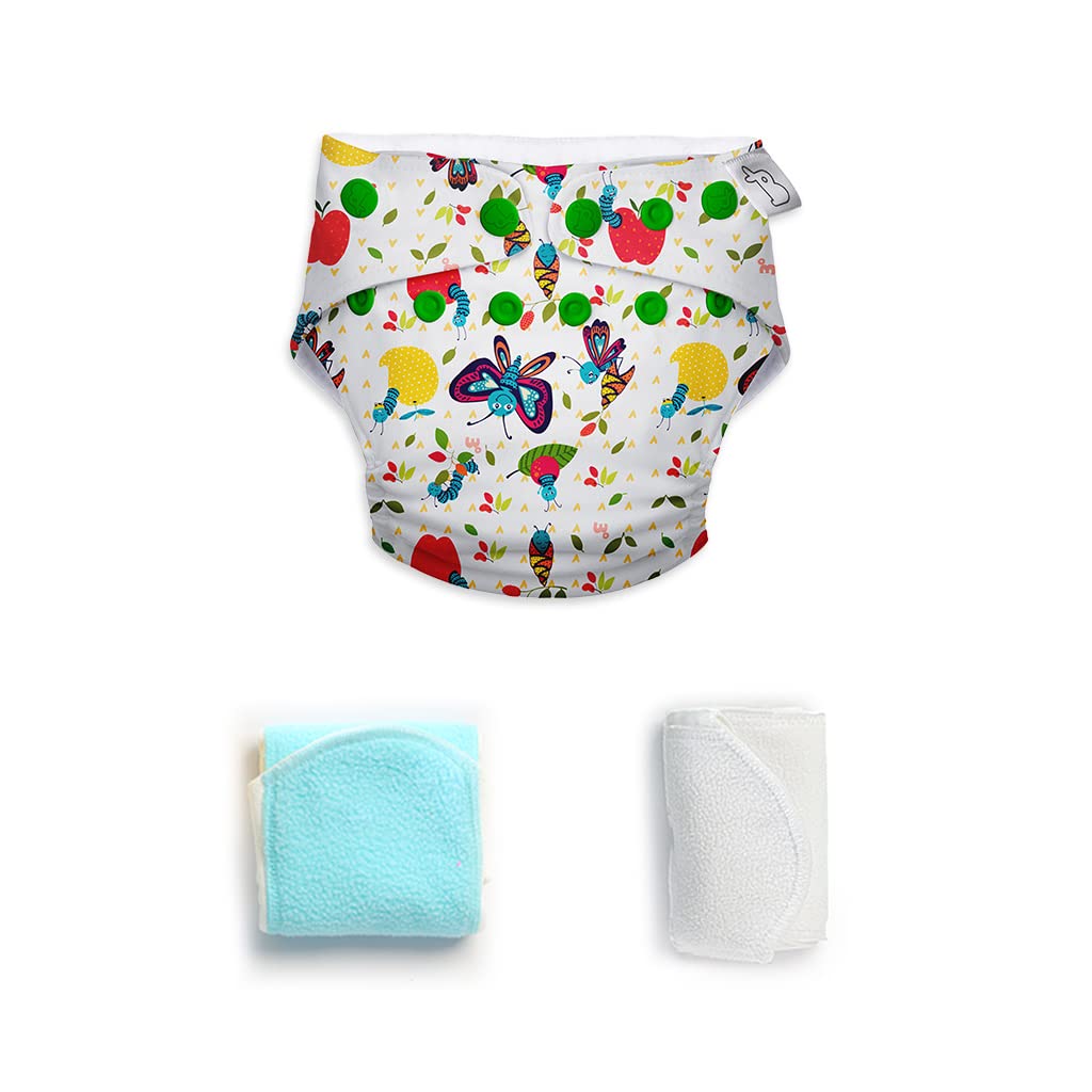 SuperBottoms UNO Freesize Cloth Diaper | Cloth diaper for babies 3M to 3Y | Washable & Reusable cloth diaper | Comes with cloth diaper inserts | 1 Organic cotton Soaker + 1 Booster | Catepillar