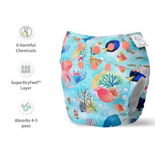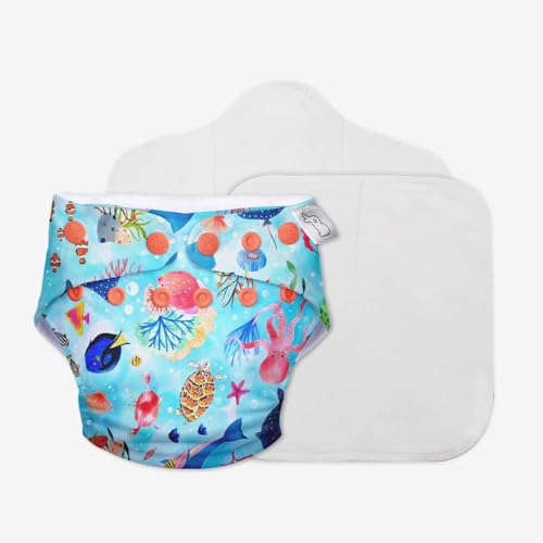 SuperBottoms UNO Freesize Cloth Diaper | Cloth diaper for babies 3M to 3Y | Washable & Reusable cloth diaper | Comes with cloth diaper inserts | 1 Organic cotton Soaker + 1 Booster | Save the Seas