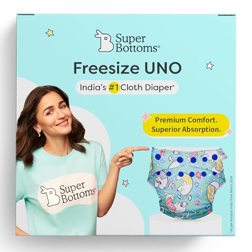 HomeBabyDiaperingCloth DiapersSuperBottoms UNO Freesize Cloth Diaper with Pad & Extra Booster (1 Waterproof Outer + 1 Organic Cotton Dry Feel Magic) Cloth diaper for babies 0 to 3 years | Washable & Reusable