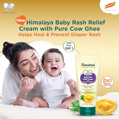 Himalaya Baby Rash Relief cream with Pure Cow Ghee and Soothing Aloe Vera Extract is specially formulated to keep new borns skin soft and protected from first use. The cream is enriched with 15% Zinc Oxide which soothes and helps heals irritated skin provides relief from irritation and protects your newborns nappies zones from rashes. The formula is designed with protective barier technology that performs a protective covering for long lasting protection from wetness.