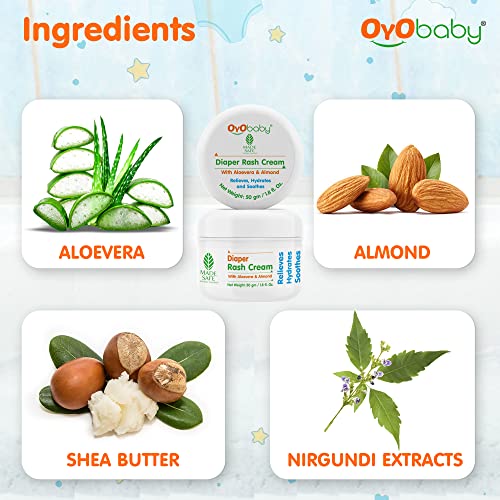 OYO BABY Diaper Rash Cream, 50g | Natural Nappy Cream for Newborns & Babies | Prevents & Treats Diaper Rash | Enriched with Aloe Vera & Almond