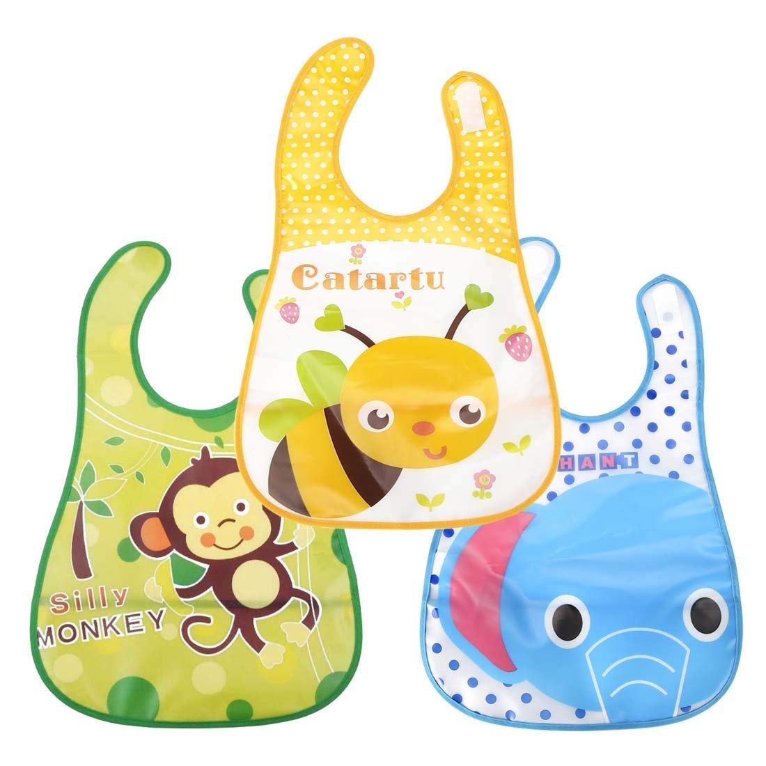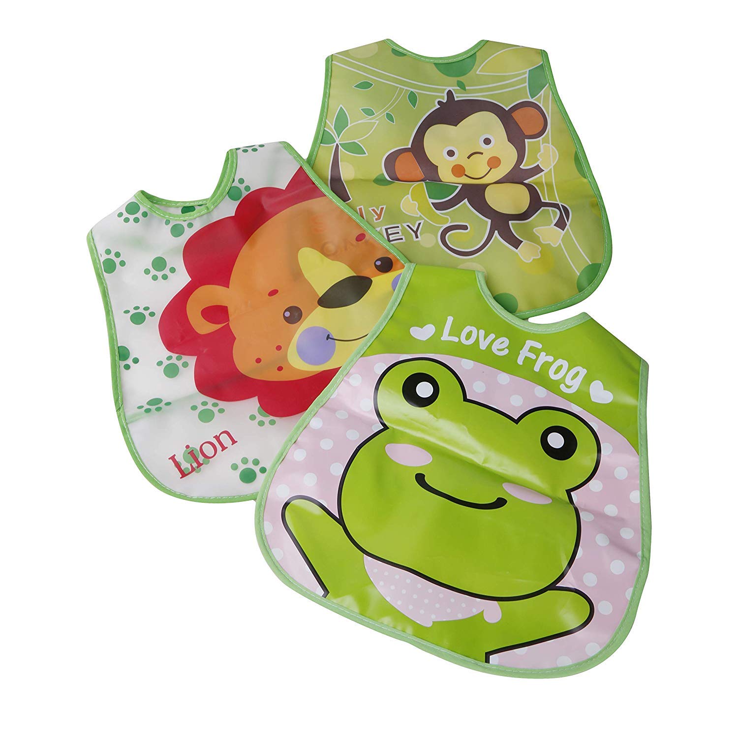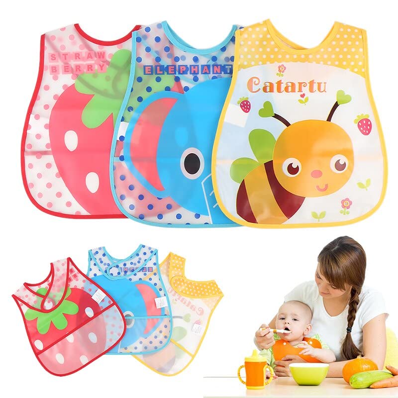 BabyGo Plastic Waterproof Baby Apron with Bib (Pack of 3) Random Color