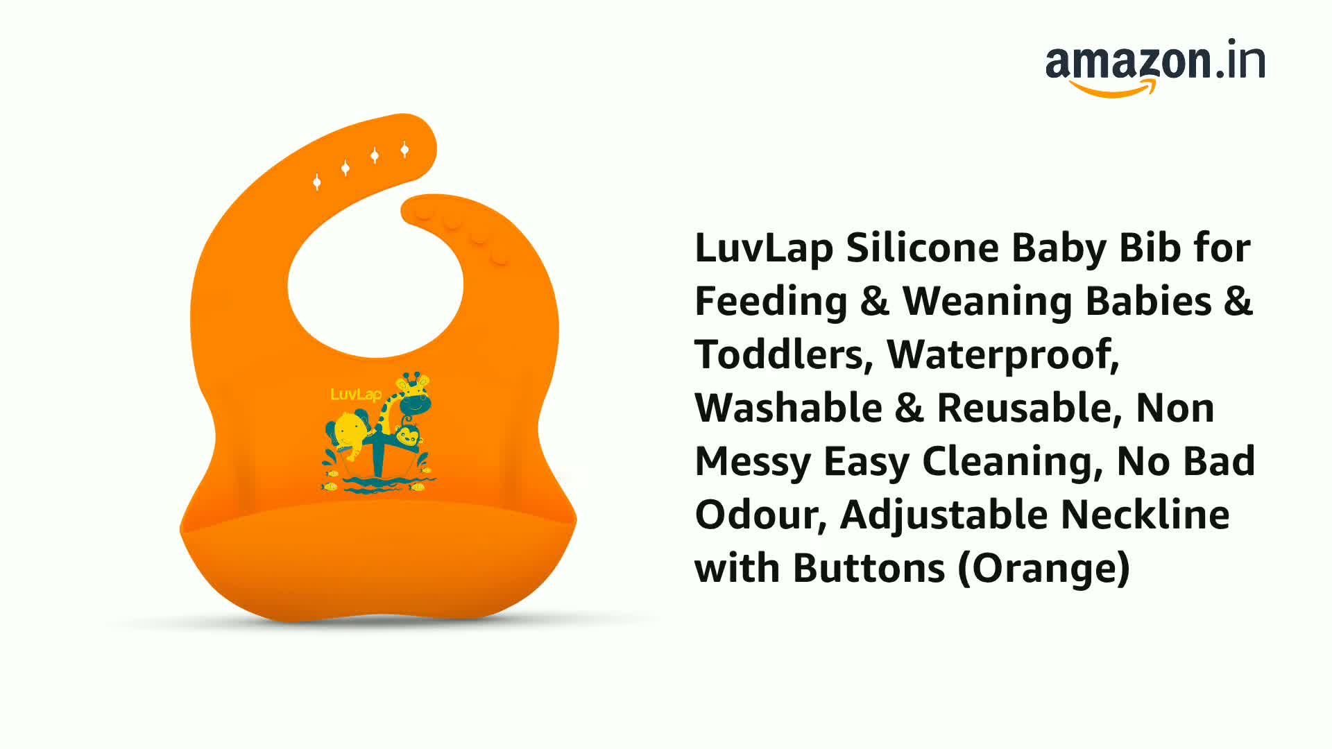 LuvLap Silicone Baby Bib for Feeding & Weaning Babies & Toddlers, Waterproof, Washable & Reusable, Non Messy Easy Cleaning, No Bad Odour, Adjustable Neckline with Buttons (Orange)