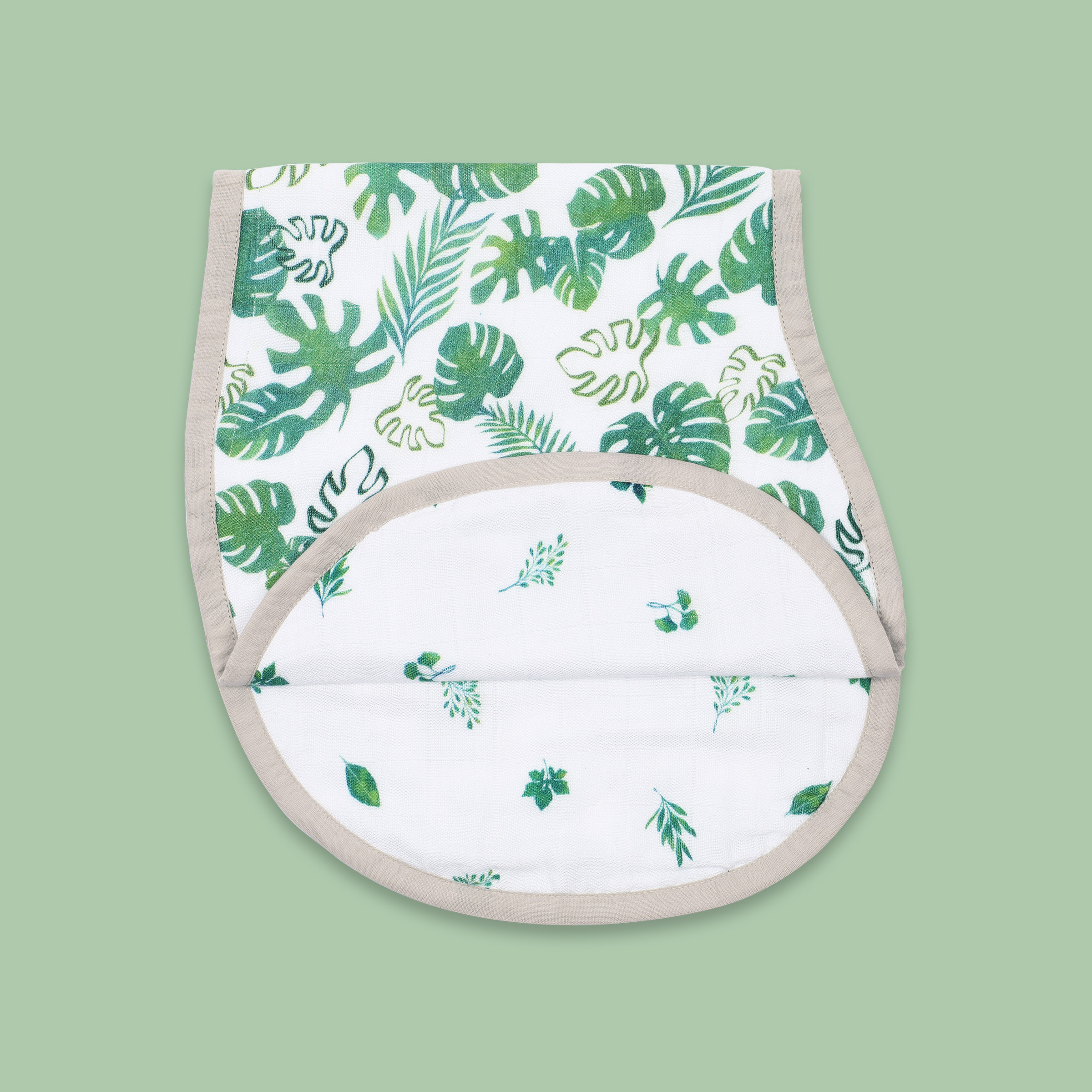 Made with two layers of bamboo muslin, our all-in-one burp cloth and bib keeps you and your little one clean. The super absorbent fabric with its unique shape sits right over your shoulder to catch baby's sniffles, drips & drools while burping.When your baby can sit up, you can secure the bib around their neck in a snap, making it a must-have during meal timeSizeTwo Burpcloths 22L x 9.5W" (56 x 24cm) each