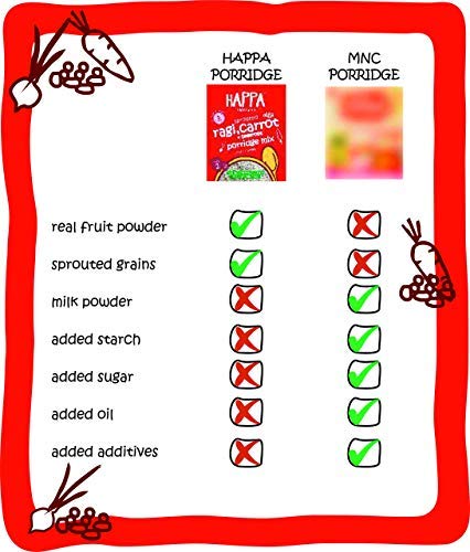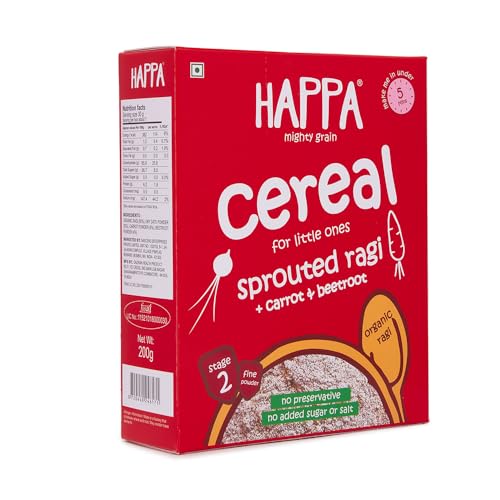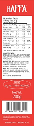 Happa Organic Ragi Cereal | (Ragi - Carrot - Beetroot) x 2 | Calcium Booster - Bone Strength | 100% Organic Khichdi | No Added Salt, Sugar or Milk | No preservatives | Pack of 2 (200gm x 2)