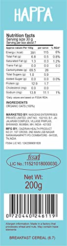 • Happa Organic Oatmeal porridge mix is made up of 100% Organic Oatmeal sourced from exclusive organic certified farms, Farm fresh, healthy, organic and 100% natural.