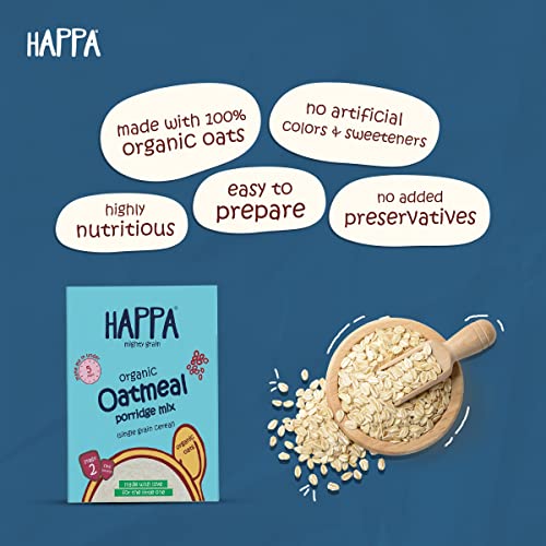 Happa Organic Baby Food Oatmeal Porridge Mix Cereal | Vitamin Mineral Powerhouse | Instant Health Food | 100% Natural and Organic Khichdi | No Added Salt, Sugar or Milk | No preservatives | 200gm