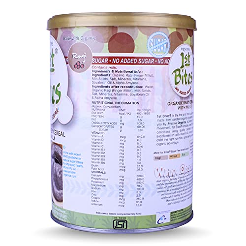1st Bites is a milk and cereal based complementary food recommended for infants above 6 months of age. 1st Bites is made with organic ingredients.