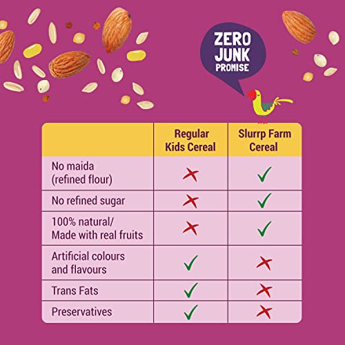 Slurrp Farm Sathu Maavu | 100% Natural Multigrain Health Mix with The Goodness of Ragi Dals & Almonds | No Salt No Sugar No Milk | 200gIngredients: Ragi Jowar(Sorghum) Foxtail Millet Moong Dal Bengal Gram Brown Rice Almond Flour Cardamom powder Vitamins and Minerals How to Use: 1. Add 1/2 cup of water or milk into a pan 2. Add 3 level table spoons (30 gms) of Sathu Maavu mix 3. Mix well to remove the lumps 4. Cook on a medium flame for 3-5 mins and stir continuously to avoid lumps 5. Cool to room temperature and feed immediately | Once the pack is opened transfer the contents to an airtight container store in cool dry place or in a refrigerator | At Slurrp Farm brand made by 2 Mothers we are passionate about raising awareness of healthy eating for children and giving busy parents like us the convenience needed in terms of being able to find food options which are as good as what we would make at home.Slurrp Farm Choco Crunch Chocolate Cereal | No Maida No Refined Sugar No Added Colour | Ragi Stars and Moons | Healthy Breakfast for Kids | 400 gNo maida refined sugar wheat flour and palm oil