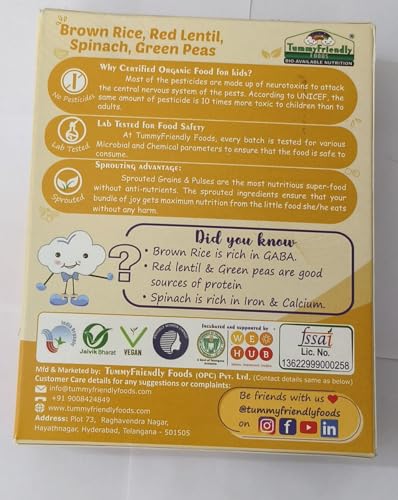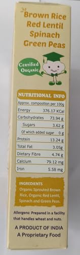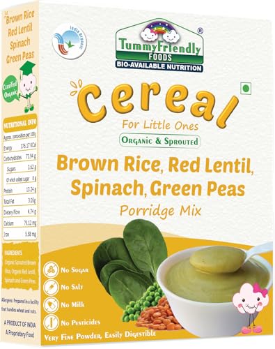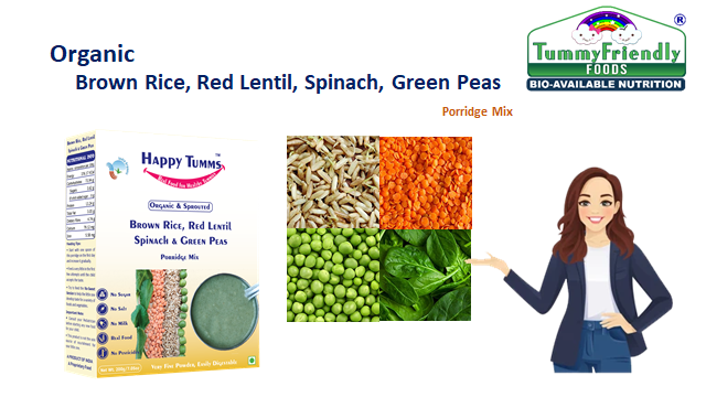 Tummy Friendly Foods Certified Organic Sprouted Brown Rice, Red Lentil, Spinach, Green Peas Porridge Mix | Khichdi Mix | Organic Food | Excellent Weight Gain Baby Food | 200g
