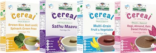 TummyFriendly Foods Certified Organic Sprouted Porridge Mixes Combo Pack With Brown Rice | Made of Organic Sprouted Ragi Powder, Organic Sprouted Whole Grains, Organic Sprouted Pulses, Fruit, Vegetables and Nuts For 8 Month Baby | Maximum Possible Nutriti