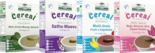 TummyFriendly Foods Certified Organic Sprouted Porridge Mixes Combo Packs With Oats | Made of Organic Sprouted Ragi Powder, Organic Sprouted Whole Grains, Organic Sprouted Pulses, Fruit, Vegetables and Nuts For 8 Month Baby | Maximum Possible Nutrition Fr