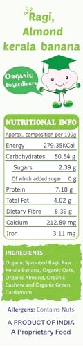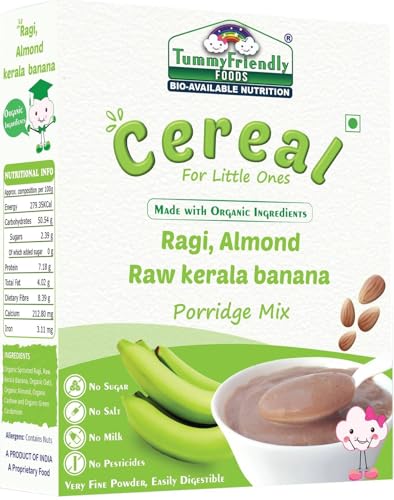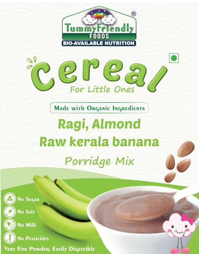 TummyFriendly Foods Organic Sprouted Ragi, Almonds, Raw Kerala Banana Porridge Mix | Made of Sprouted Ragi Powder | Available in Trial Baby Packs too | Shelf-life 9 month | 200g