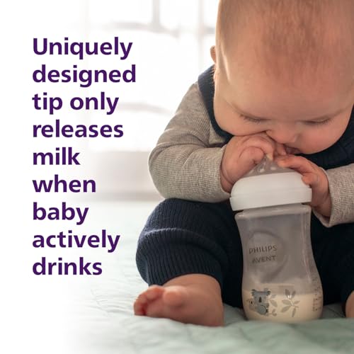 Embrace the Philips Avent Natural Response Baby Bottle SCY903/67 a breakthrough in baby care for parents and little ones transitioning from breast to bottle. Adorned with an adorable koala pattern this 260ml baby milk bottle is designed to respect the unique feeding patterns of babies aged 1 month and above making it a perfect blend of form function and fun. The Philips Avent SCY903/67 is intended for the modern parent looking to combine the benefits of breastfeeding with the convenience of bottle-feeding. The wide breast-shaped nipple with a soft feel is designed to encourage natural latch making it easy for babies to combine breast and bottle feeding. The bottle's anti-colic valve is engineered to prevent colic and discomfort by keeping air away from your baby's tummy. With its ergonomic design the Philips Avent SCY903/67 bottle is easy to grip from any angle providing maximum comfort for both you and your baby. The range of flow rates accommodates your baby's growth and the evolving feeding pattern. Plus the wide neck of the bottle and the minimal number of parts make filling and cleaning effortless. Philips Avent Natural bottles and nipples are made from BPA-free materials ensuring safety and quality for your child. The SCY903/67 model is designed to be different from traditional free-flow bottles offering a more natural feeding experience that may take a little getting used to â just like with breastfeeding. The package includes one 9oz/260ml baby bottle designed to make feeding times comfortable natural and joyful.