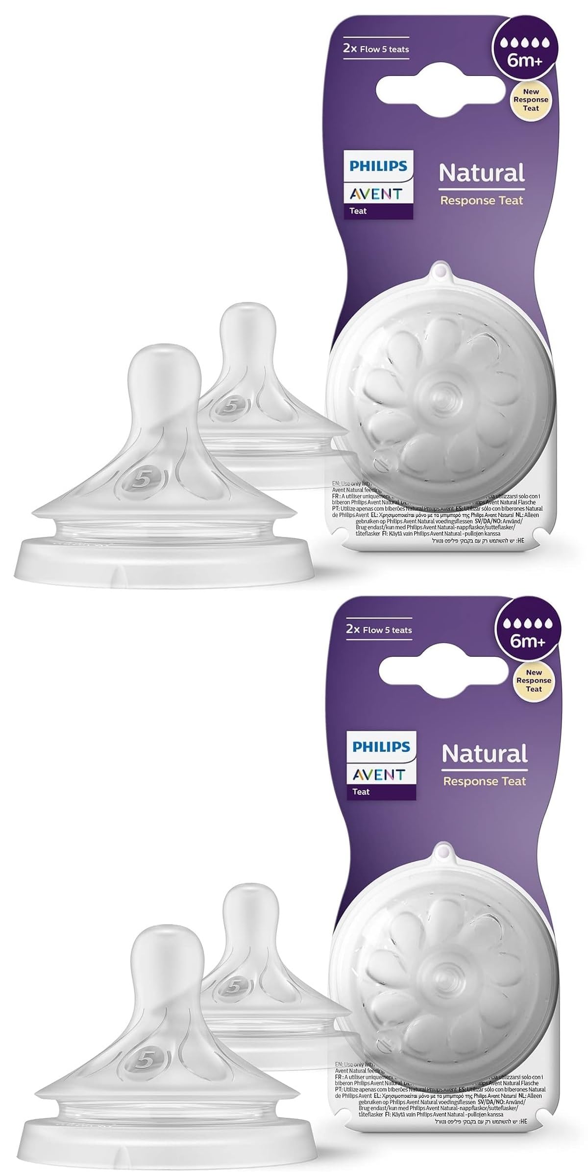 Avent Philips Natural Teat Fast Flow - 6Months+ (Pack of 2) 4 Nipple