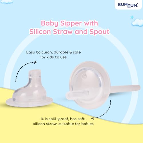 Bumtum Baby Sipper with Silicon Spout and Straw Soft Silicone Spout and Straw Bpa Free 150ml - (Pack of 1)