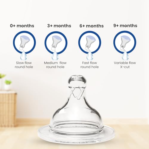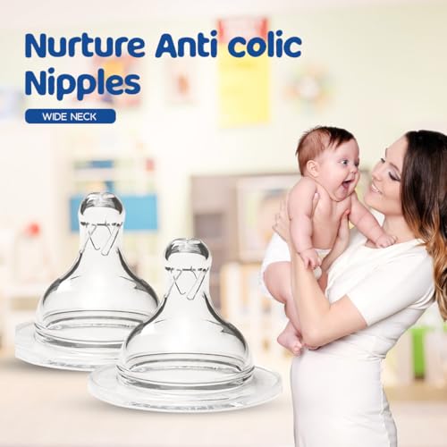 BUMTUM Nurture Anti Colic Teat/Nipple for Wide Neck Bottle |4pcs- Large Size |Bottle Nipple for Baby, 6m+ | Soft & Flexible Silicone| Leak Proof, Bpa Free