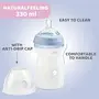 Chicco Natural Feeling Feeding Bottle for Babies, 330ml (6+ Months)|Mother Breast Like Teats|Soft Silicon, Anti-Colic Teat | Angled Teat Suitable for Newborns | with Anti-Drip Cap | BPA Free (Blue)