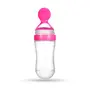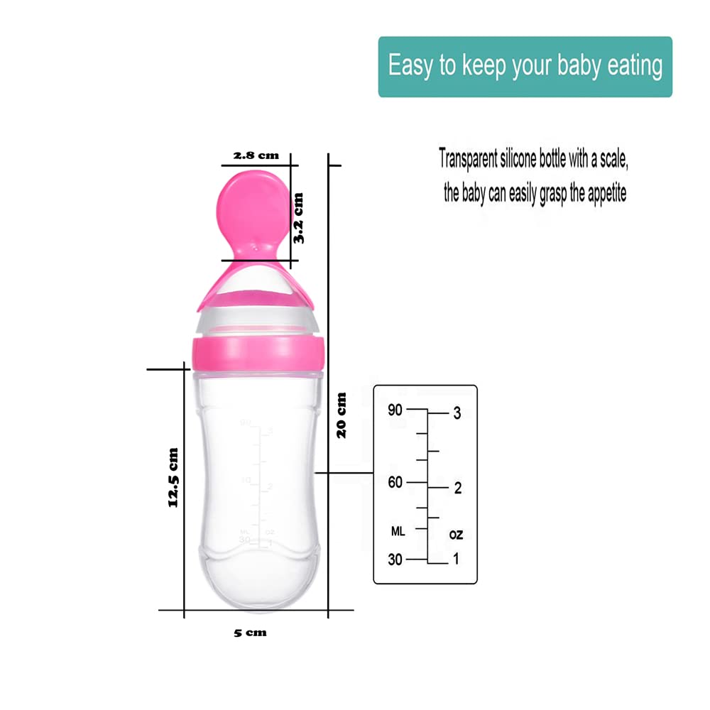 GOODMUNCHKINS-Silicon Food Feeder Silicone Spoon Feeder makes baby feeding easy for Parents. Ideal for 6 months and up babies this all-in-one feeder makes it a lot quicker and easier to feed a fussy baby.. The Baby Feeder spoon and bottle are made of food-grade silicone Soft enough to touch babies mouth. Clean the Silicone Spoon Feeder before use all parts can be sterilized or boiled in water for 3 to 5 minutes. A convenient way to feed your baby first pureed foods and cereals and help make feeding time easier and less messy. Gently squeeze the Spoon Feeding Bottle until the desired amount of food collects onto the spoon to feed the baby.