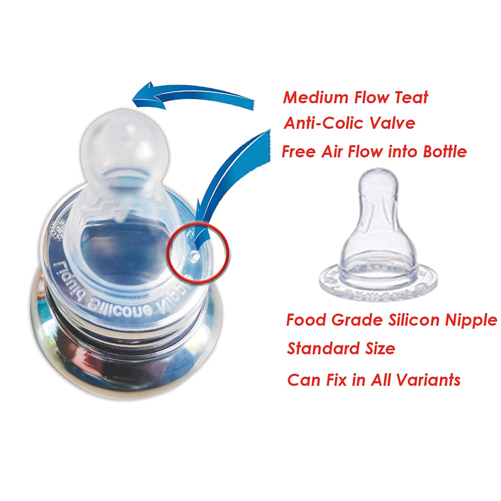 Anti Colic Silicone Nipple 304 Grade Stainless Steel No Joints