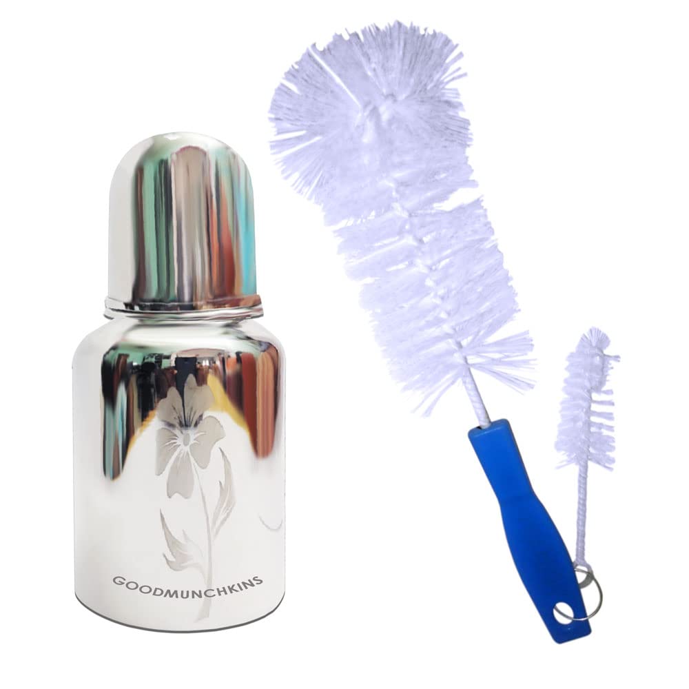 Goodmunchkins Stainless Steel Baby Feeding Bottle 304 Grade Steel for Infants/Toddlers Jointless with Bottle Cleaning Brush