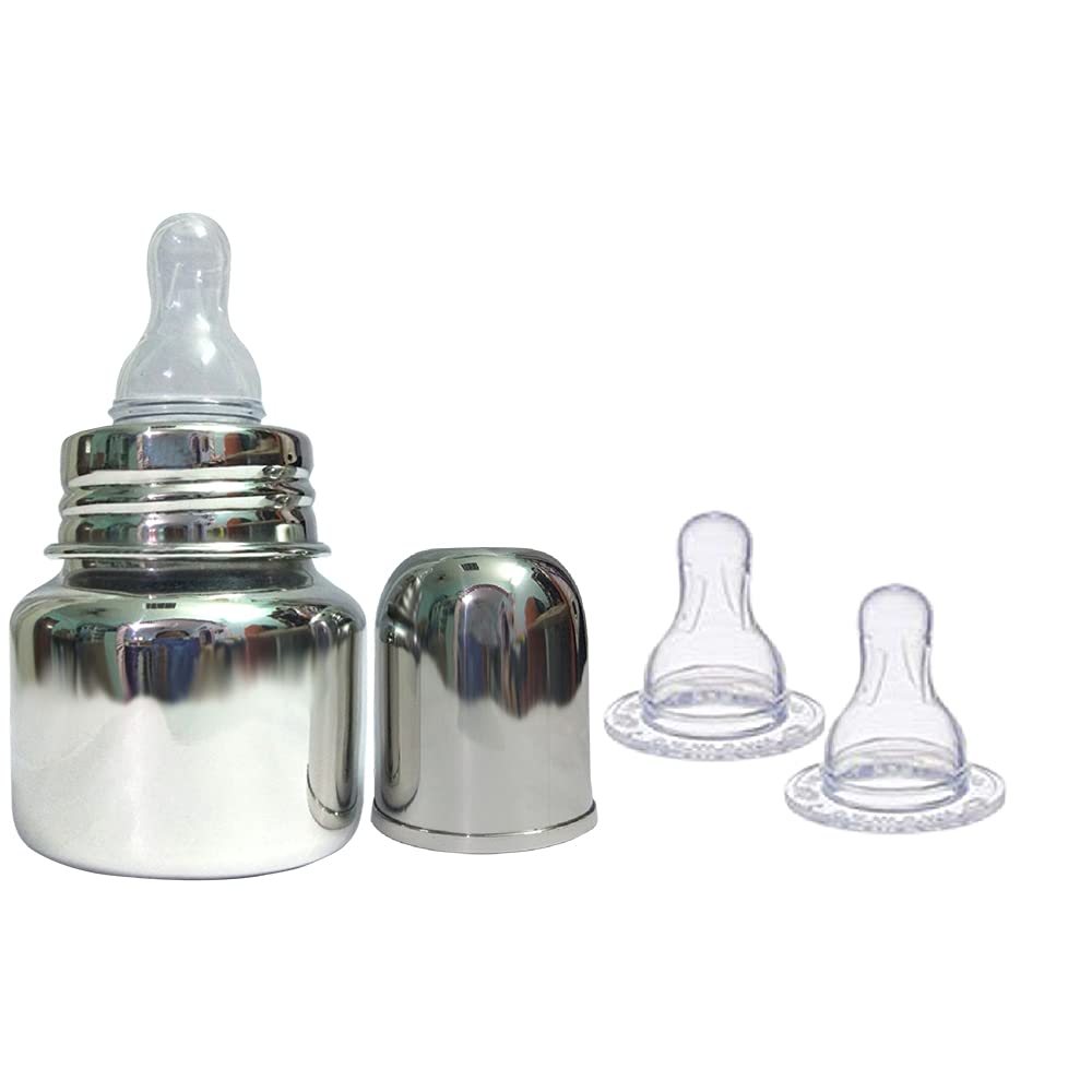 Goodmunchkins Stainless Steel Feeding Bottles opt for Newborn Baby/Infants/Toddlers. The size available 75150300ml Capacity. The Bottle is made of 304 Grade Steel without any welding Joints in the Bottle hence there is Rust Free Insides and Outside of the Bottle considering the Hygiene and Health of your Baby. The Bottle is made 100% with No Leakage on the neck side There are more quality checks Before Dispatching the Bottle to the Customer. Mirror finishing Bottle we can store Milk/Water/Juice/Soup. Lightweight so baby can hold it easily at the same time it very strong product. The Nipple is made of Food Grade Silicone. Extra soft medical-grade silicone spout provides an easy transition from bottle-feeding. Smooth Design with no sharp curves or edges keeping in mind Easy and Safe cleaning of the bottle. Easy to Carry Easy to Handle and Easy to Clean. No smell. No mess. The bottle is of sleek design and is very convenient while handling. Reduces sterilization work. Only Silicon Nipple needs to be sterilized. The bottle can be washed with Soap and Water Made in India.