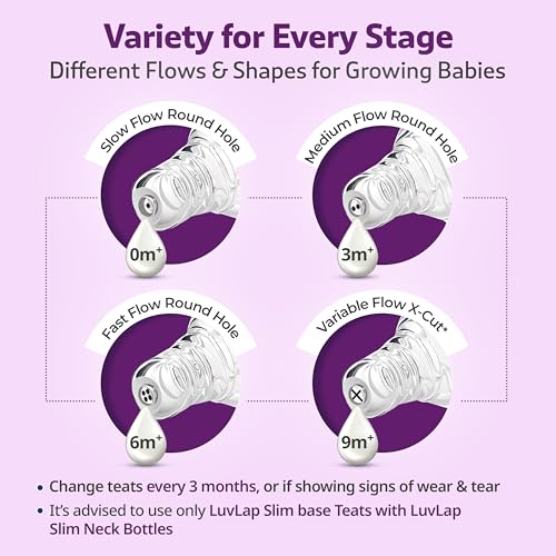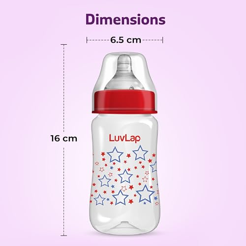 LuvLap Natura Flow Feeding Bottles are ergonomically designed to be easily held while feeding the baby. All LuvLap bottles are 100% BPA free and fully sterilizable. The teats are 100% Liquid Silicone and have an anti-colic valve that vents air into the bottle preventing any air from entering the babys tummy. The teat has grooves at the tip which encourage peristaltic suckling while the wide base helps the baby get a natural latch similar to that on the mothers breast. This helps easy transition between breastfeeding & bottle feeding. The grooved teats and superior silicone quality ensure no nipple collapse helping in an uninterrupted feed.