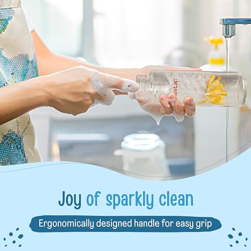 At LuvLap we understand your concern about your Baby's health. Better hygiene of babys feeding bottle nipple and other accessories can be the key to safeguard your baby from germs & diseases. We also realise that a mothers life is not easy and thus we are committed to your comfort so that you can enjoy motherhood. LuvLap's Bottle and Nipple Cleaning Brush ensures best hygiene of babys bottle and other accessories. Its unique Non slip Easy Grip long handle with grooves ensures no strain on your wrists