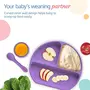 LuvLap 5-in-1 Silicone Baby Cutlery Set Baby Feeding & weansing Essentials - Divider Plate with Suction Base Tumbler Bib with Crumb Catcher Food Bowl with Suction Base Silicone Spoon (Purple)