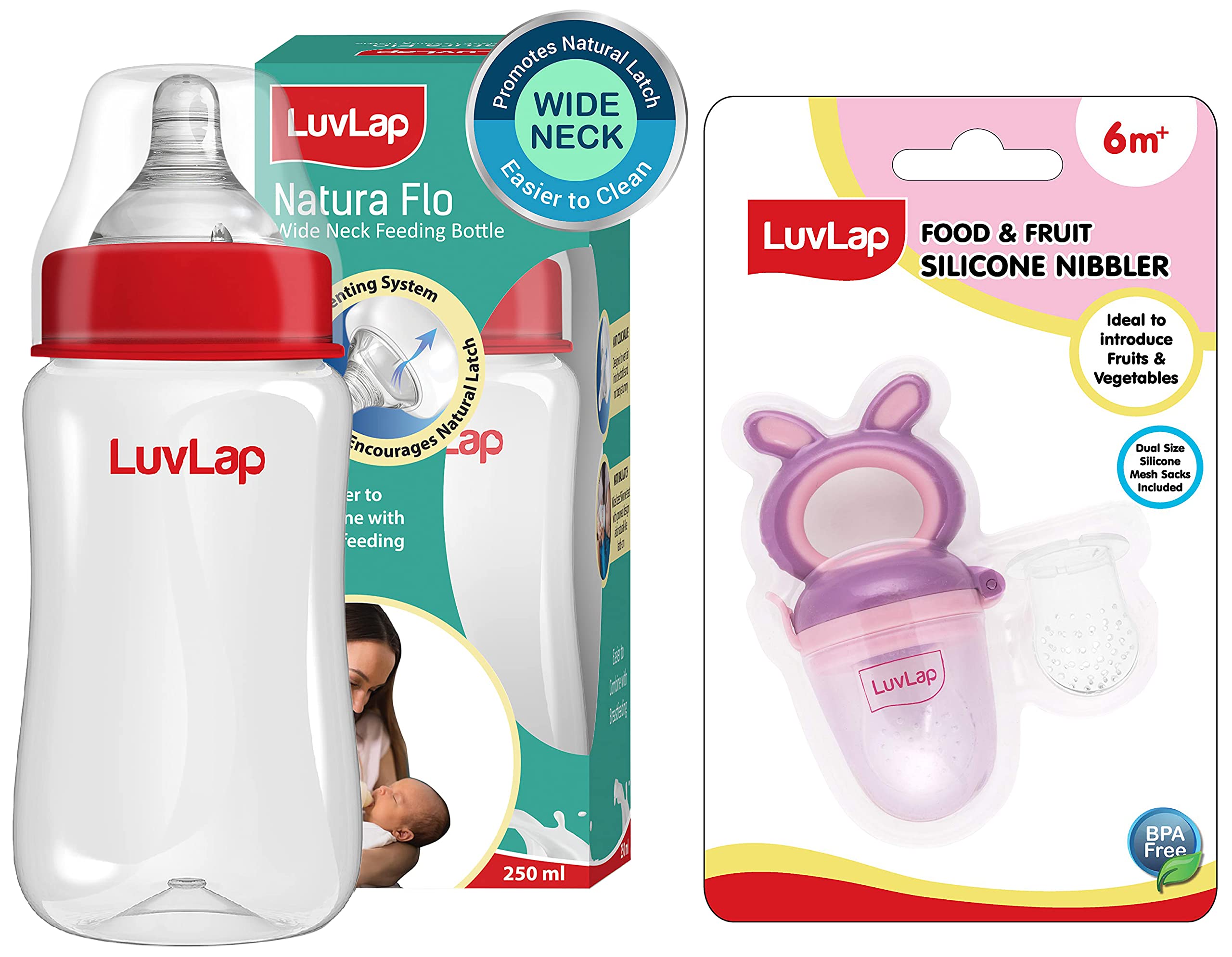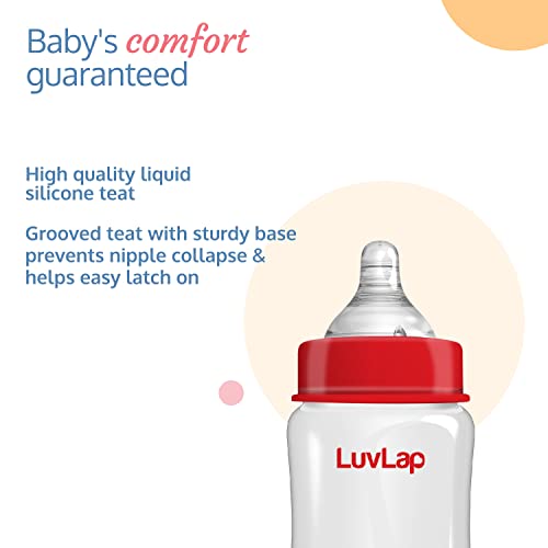 LuvLap Wide Feeding Bottle 250 ml, Pack of 2 & Wide Nipple Medium Flow, 2 Pcs