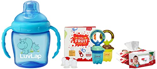 LuvLap Baby food and fruit feeder twin pack with three Feeder Sack sizes BPA Free Brown and BlueLuvLap Baby food and fruit feeder twin packs are availble in attractive colors ergonomic designs and makes baby's introduction to solid food and feeding to weaning babies an easiser job. The pack contains 3 different sizes of feeder sack to meet the growing consumption need of the babiesLuvLap Paraben Free wipes for baby skin with Aloe Vera Fragrance Free pH Balanced Dermatologically Safe Baby Wipes Rich in Vitamin E & chamomile extract 72 Wipes / Pack With Lid Pack 3 packsLuvLap moisturizing baby wipes with aloe vera are the perfect wipes for your baby's delicate skin. Enriched with the goodness of aloe vera and chamomile they are completely free of alcohol and harmful parabens. The pack also comes with a lid seal to ensure the quality remains consistent over time. After all your baby's safety is our prime concern.LuvLap Hippo Sipper BlueLuvLap Hippo Spout Sippers are meant for babies' of 6 month + age. The sipper comes with an intelligent spout with touch flo valve which ensures zero spillage. The sipper is made up of BPA free plastic.