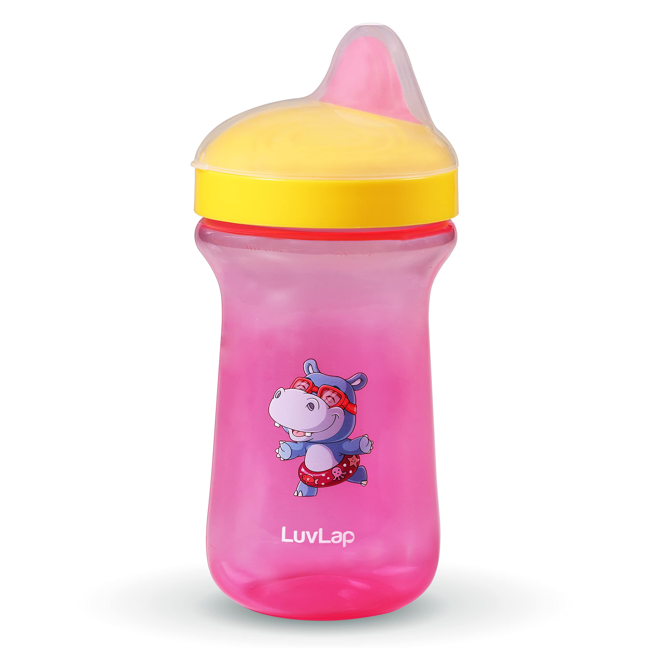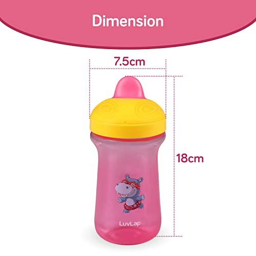 LuvLap Happy Hippo Hard Spout Sipper for Infant/Toddler, 300ml, Anti-Spill Sippy Cup with Easy Sip Bite Resistant Hard Spout, Ergonomic Shape, BPA Free, 6m+ (Pink, Polypropylene (PP))