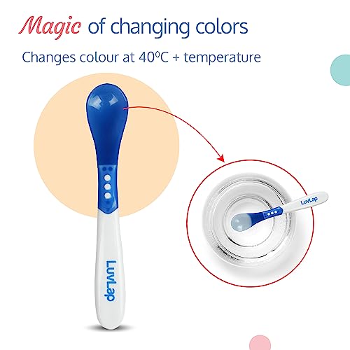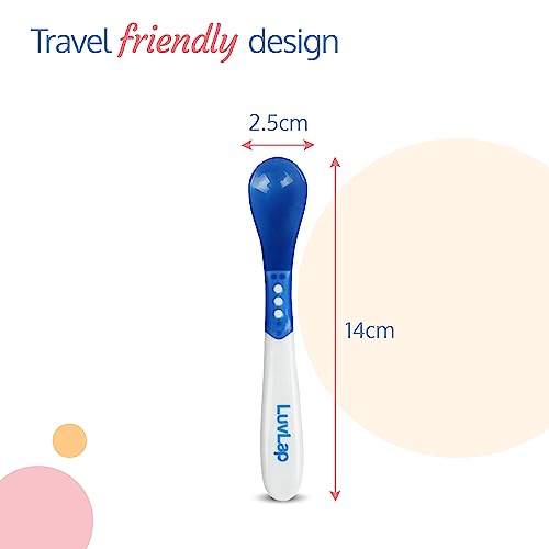 LuvLap Heat Sensing Baby Spoons are uniquely designed baby feeding and weaning spoons. The scoop head is made of Heat Sensing TPE material and changes colour if food is very hot and helps protect baby from scalding. It is ideal to be used for Kids from 3 Months+ of age.