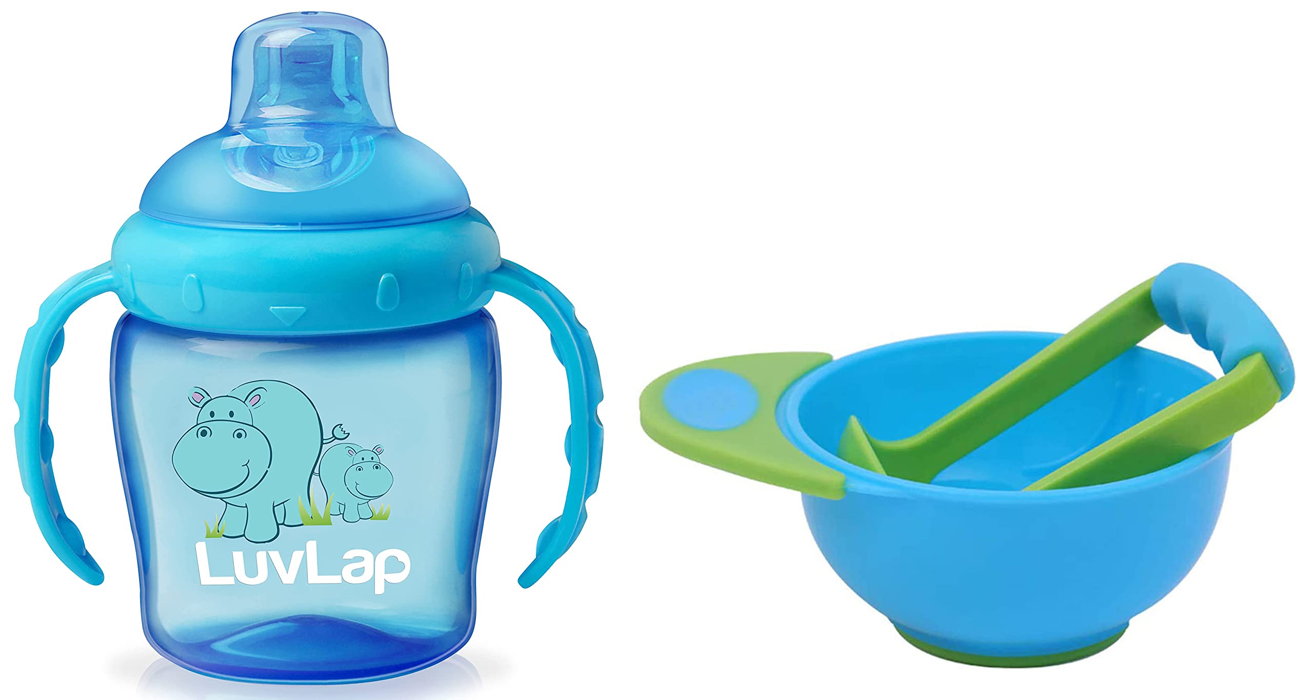 LuvLap Hippo Sipper BlueLuvLap Hippo Spout Sippers are meant for babies' of 6 month + age. The sipper comes with an intelligent spout with touch flo valve which ensures zero spillage. The sipper is made up of BPA free plastic.LuvLap Baby Food Grinding Cum Feeding Bowl Portable Baby Food Masher & Serving Bowl for Baby weaning Food Preparation (Green & Blue)LuvLap LuvLap Baby Food Grinding cum Feeding Bowl is Made of BPA Free PP material. It is nontoxic odor free and tasteless. It can be used to grind fruits & vegetables meat and fishes into smooth paste and pureed food. It is easy to clean. Just rinse it with running water & let it dry