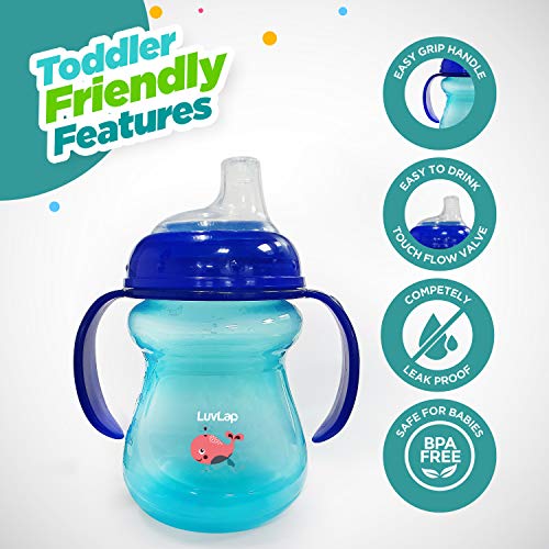 LuvLap Hippo Sipper / Sippy Cup 225ml Anti-Spill Design with Soft Silicone Spout 6m+ (Green)Luvlap hippo sipper with soft silicon spout is ideal for your 6 months plus baby. The soft silicon spout helps in overall oral development of your child. It has an in-built valve which makes it non- spill and leak proof preventing any unwanted spilling and mess.LuvLap Moby Little Sipper/ Sippy Cup 270ml Anti-Spill Design with Soft Silicone Spout 6m+ (Blue)Attractive sippers in various designs and colours. Made from non toxic BPA free plastic and soft silicone. Silicone spout is gentle on babys teeth. Ergonomically designed easy to hold and drink from.