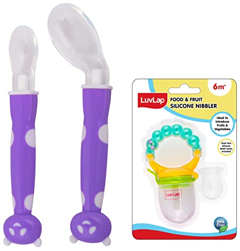 Luvlap Joy Star Baby Self Feeding Spoon Set Soft Silicone Tip BPA Free 2 pcs Magenta / WhiteLifes little stories bloom with coming of the little one in your life. It completes your life with many joys of parenthood. For baby its the next best thing to being in your arms. Entertain your little one and give him or her a personal resting place. Luvlaps high chairs cots walkers and other indoor products will have the whole household floored by babys happy smiles and chuckles. At Luvlap we endeavour to weave the little stories into our products with an emphasis on child safety and enrichment of features. So that your little one gets the comfort thats next only to the warmth of your lap. Conceived with care and made using the latest marvels of science all Luvlap products undergo multiple quality checks before they are dispatched to the stores. The products are available at all leading baby gear and online stores and conform to the european standards.LuvLap Pearly Food & Fruit NibblerFruit nibbler and teething toy to provide gentle relief to gums. Serves dual purpose of feeding fruit and vegetables to babies and can also be used as a teether. Can be filled with chilled fruits/vegetables to provide added relief. Made with bpa free food grade plastic and soft silicone it comes in attractive handle designs to EN gage the baby and is easy to hold and nibble upon